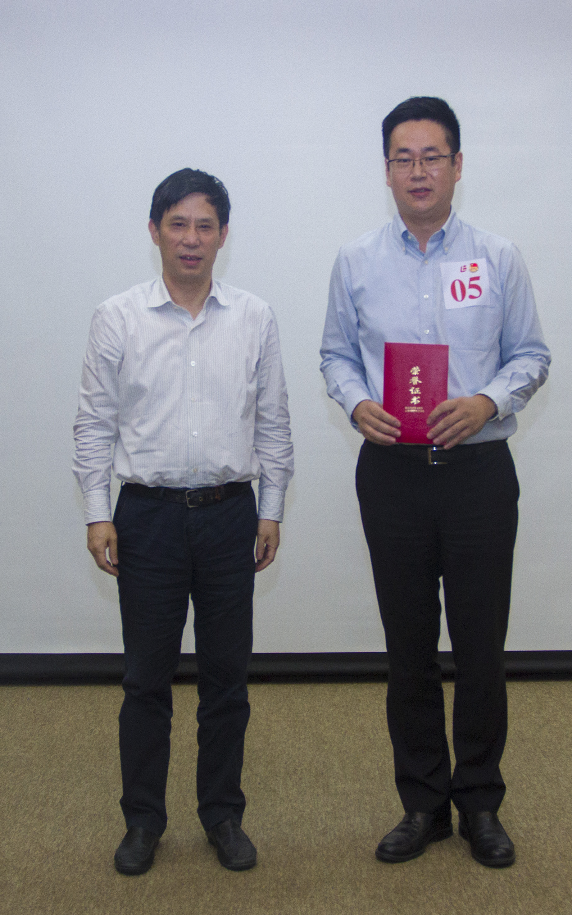<右起:集团副总裁浦静波为二等奖获得者刘蔚蔚、钱晓鑫颁奖>
