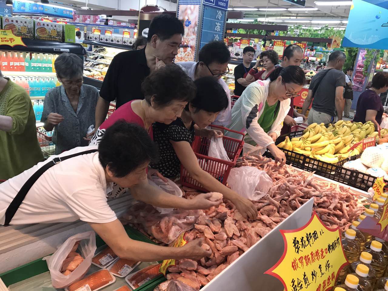 为积极配合”百联纵夏生活节”,百联优安以“夏日优安鲜品汇”为主题,精选巴西鸡翅鸡爪、南非西柚、乌拉圭牛腱等10款重点单品,直供联华和华联吉买盛门店。质优价廉的进口食品亮相首日,即吸引了大量的消费者前来采购,场面火爆。
