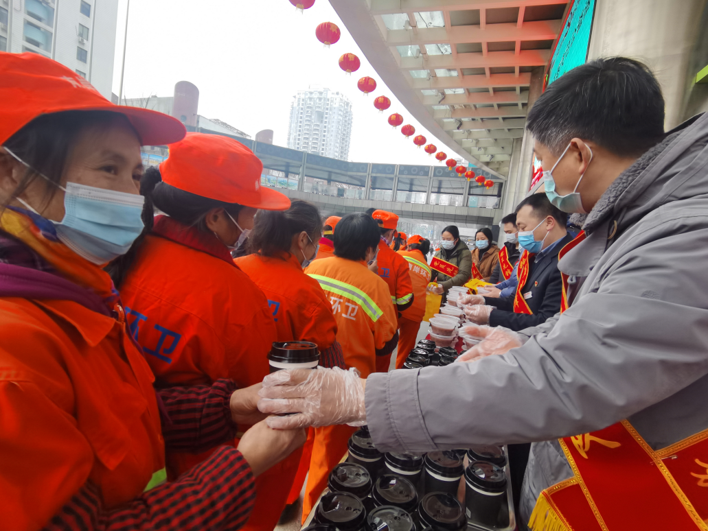 重庆百联党总支开展“冬日送温暖,关爱马路英雄”主题活动,为户外工作者送上慰问。环卫工、外卖骑手等“马路英雄”们可免费至百联南广场活动点免费领取“腊八粥和姜茶”一份。